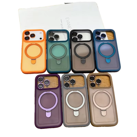 Mat akrilik şeffaf manyetik telefon kılıfı IPhone17 için 16 15 12 Pro Max iş buzlanma elektrolizle standı Lens Film kapağı