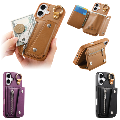PU deri bayan mobil durumda IPhone17 için kart tutucu fermuar kordon 16 15 14 13 Pro Max yeni Trendy kart cüzdan kılıf elektrolizle